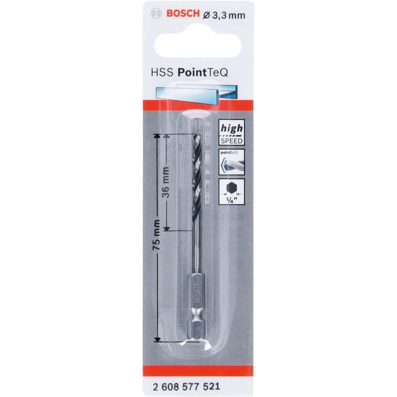 Bosch Professional HSS-Spiralbohrer PointTeQ Hex, Ø 3,3mm Bohrer, Arbeitslänge