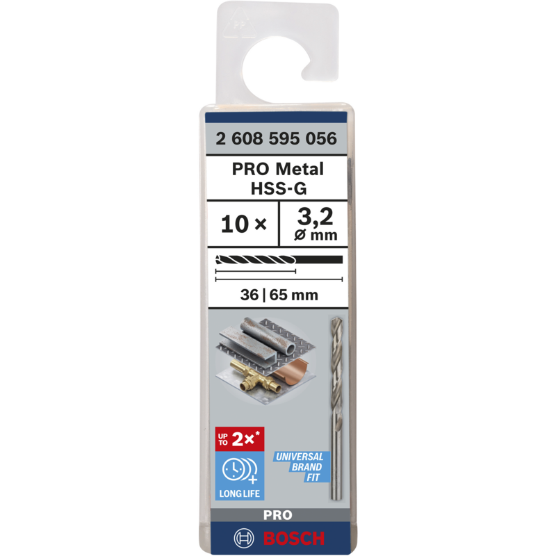 Bosch Professional PRO Metal HSS-G Spiralbohrer, Ø 3,2mm Bohrer, 10 Stück