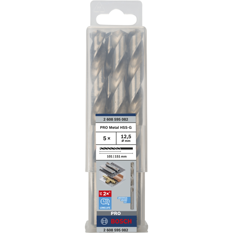 Bosch Professional PRO Metal HSS-G Spiralbohrer, Ø 12,5mm Bohrer, 5 Stück
