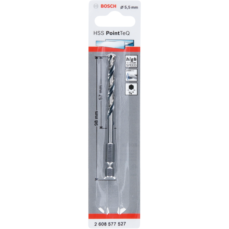 Bosch Professional HSS-Spiralbohrer PointTeQ Hex, Ø 5,5mm Bohrer, Arbeitslänge