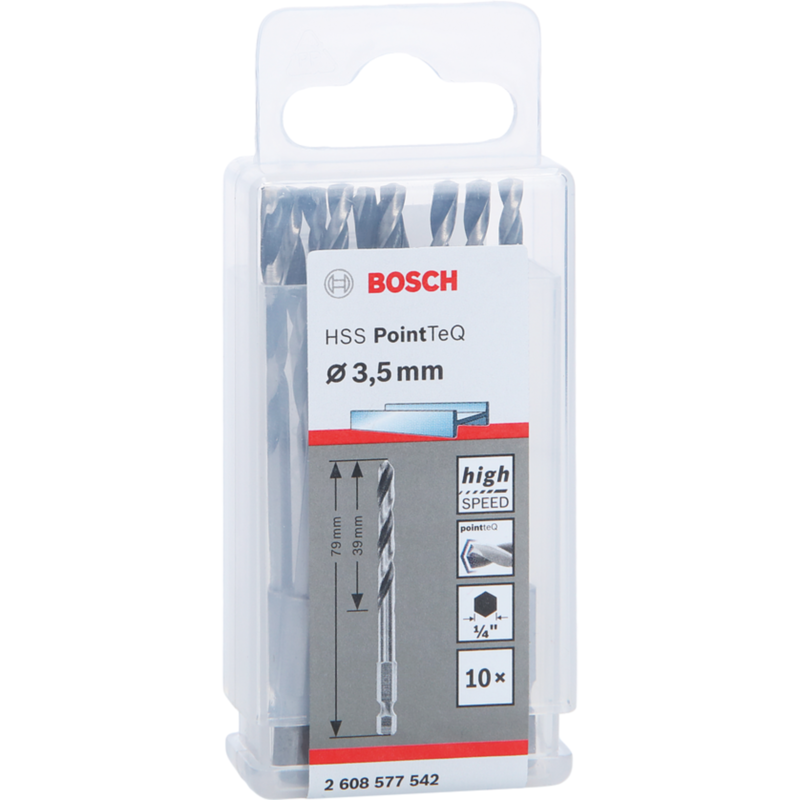 Bosch Professional HSS-Spiralbohrer PointTeQ Hex, Ø 3,5mm Bohrer, 10 Stück