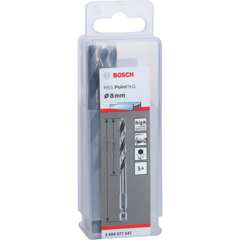 Bosch Professional HSS-Spiralbohrer PointTeQ Hex, Ø 8mm Bohrer, 5 Stück