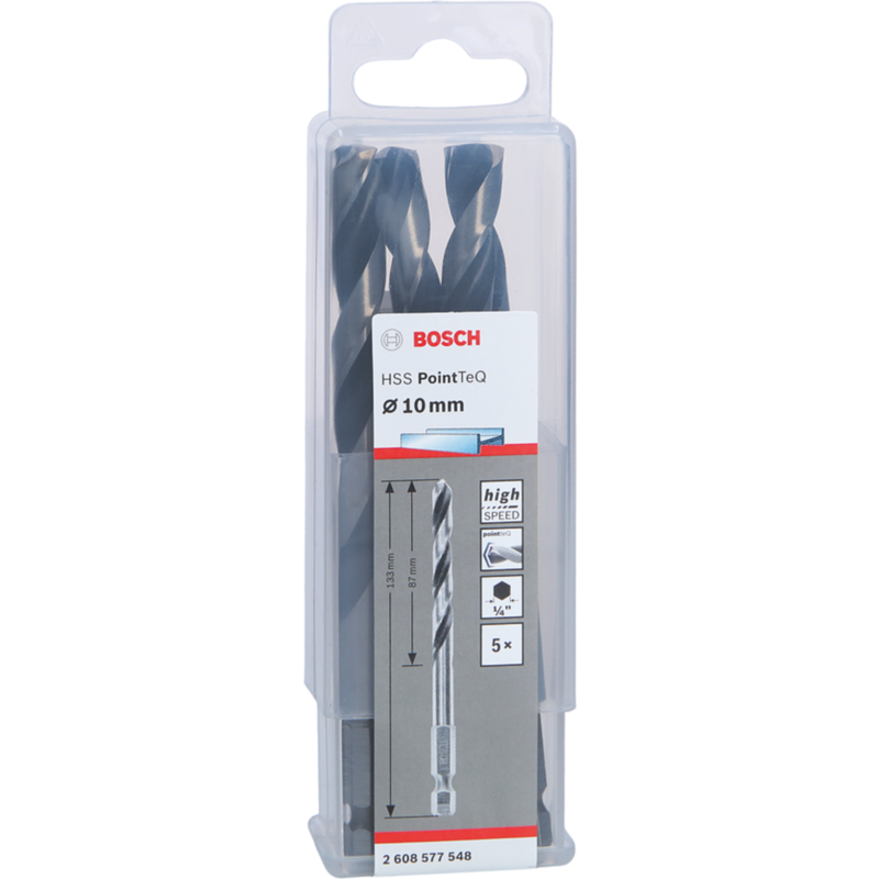 Bosch Professional HSS-Spiralbohrer PointTeQ Hex, Ø 10mm Bohrer, 5 Stück