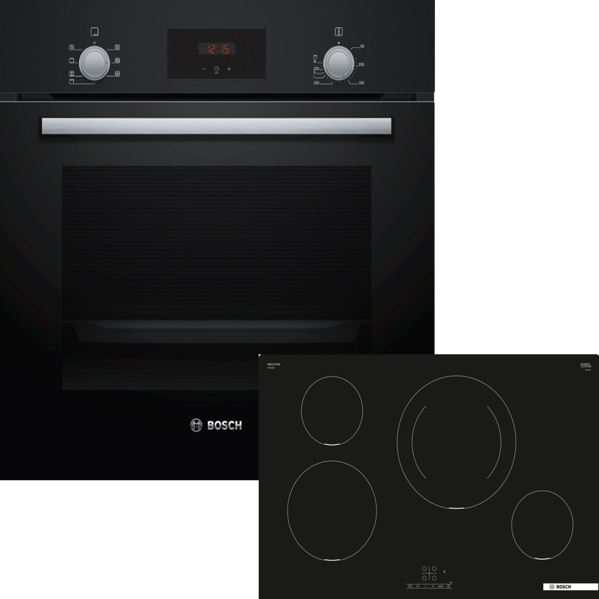 Bosch Einbau-Backofen-Set, HBA234BB3 + PIF64KBB5E, Einbau-Backofen, Induktionskochfeld HBD435FH63