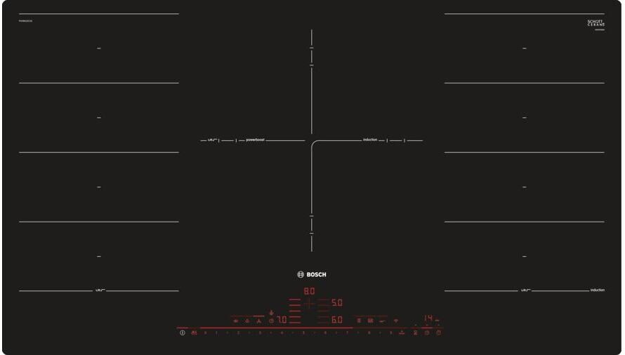 Bosch Serie 8 PXV890DV5E, Schwarz, Integriert, 80 cm, Zonen-Induktionskochfeld, Glaskeramik, 5 Zone(n)