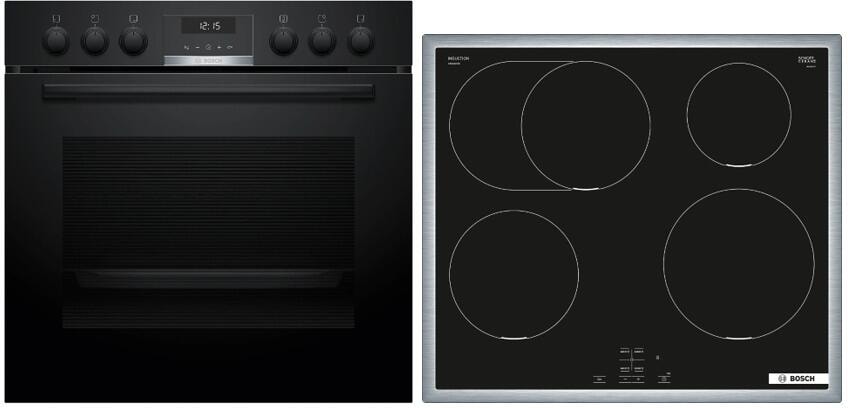 Bosch HND611VS67 A+ Herdset mit Induktionskochfeld (HEB517BB4, NIF645CB5E, HEZ542000), 71 L, Kindersicherung, schwarz