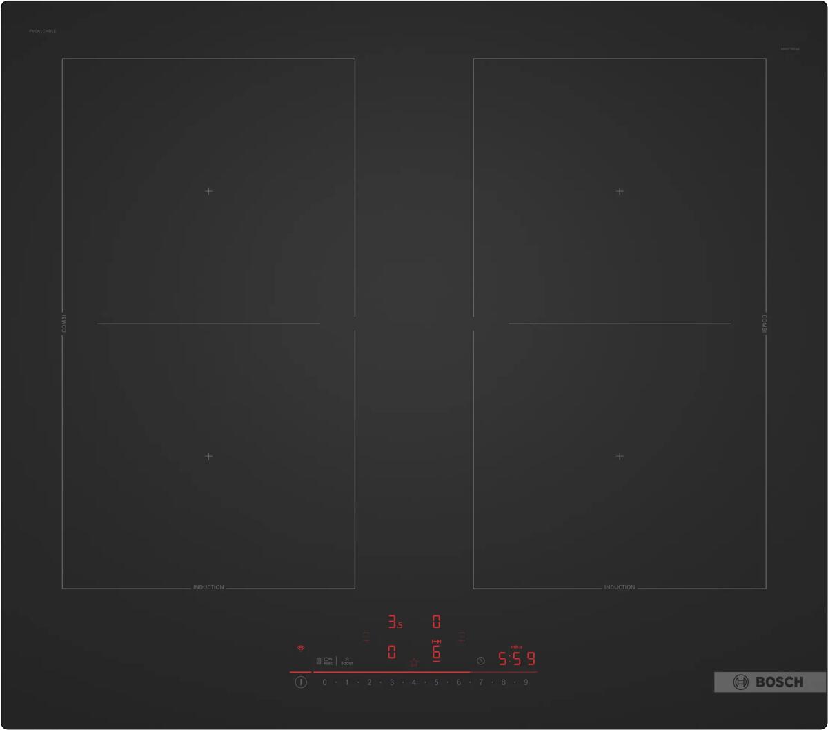 Bosch FullHouse Serie 6 PVS63KHC1E Induktionskochfeld, 60 cm, Schwarz, Rahmenlos aufliegend