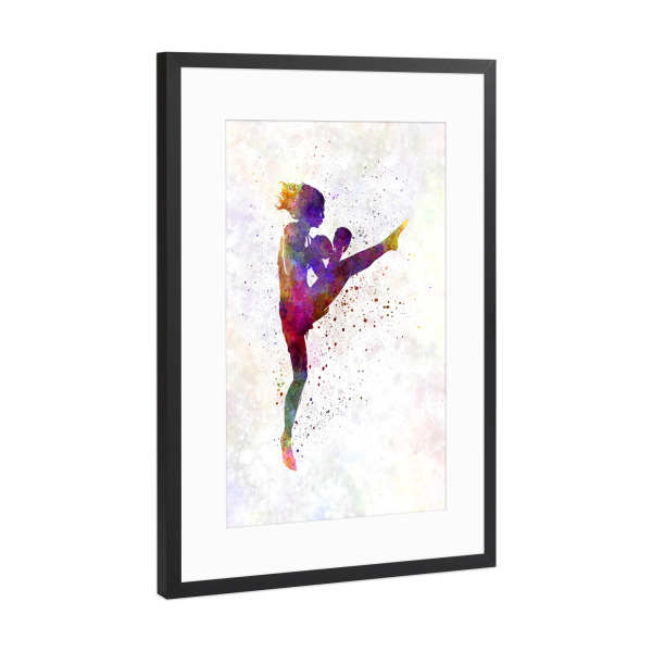 Poster mit Rahmen Schwarz (Metallic) "Woman boxer boxing kickboxing" artboxONE - Sport