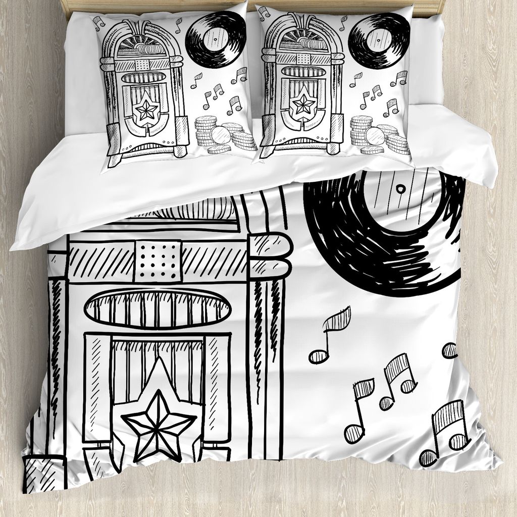 ABAKUHAUS Musikbox Bettbezug, Music Box Hinweise Münzen, Milbensicher Allergiker geeignet mit Kissenbezügen, 200 cm x 200 cm - 80 x 80 cm, Schwar...