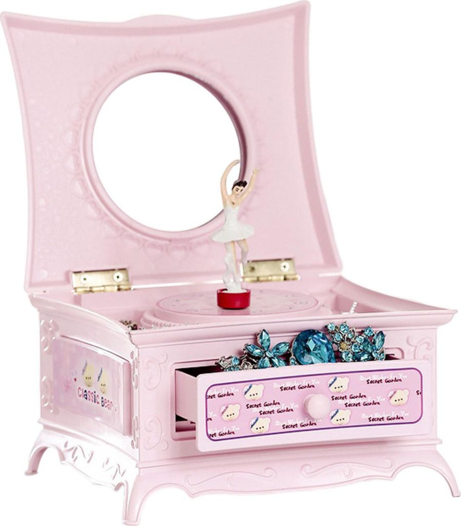 Music Box European Style Hand geschnittener Schmuck Aufbewahrung Klassische rotierende Ballerina Music Box mit Spiegel für Mädchen-Rosa
