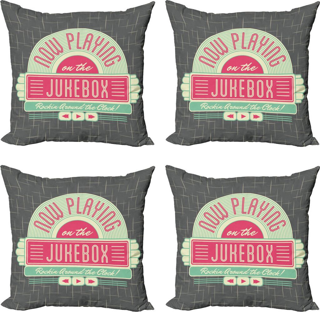 ABAKUHAUS Musikbox Kissenbezug Set (4 Stück), Vintage Music Box-Party, Moderner Doppelseitiger Digitaldruck, 40 cm x 40 cm, Mehrfarbig