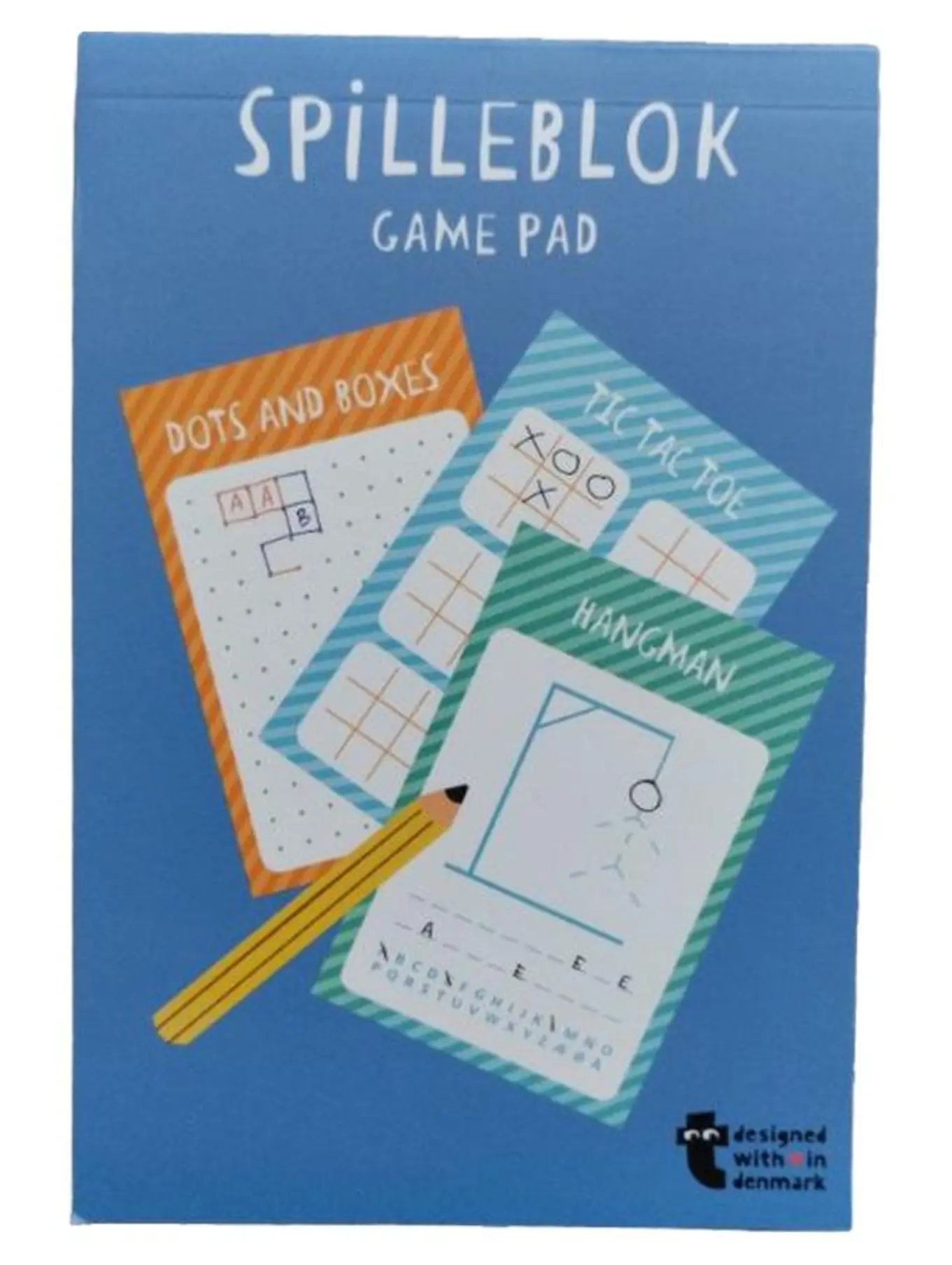MARKENLOS Spilleblok Game Pad Spieleblock Tic Tac Toe Hangman Dots and Boxes Dänemark