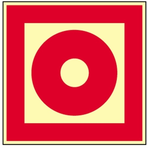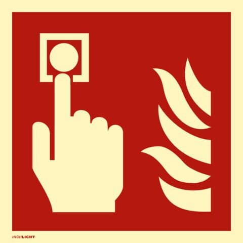 Brandmelder Druckknopfmelder Symbol nach ISO 7010 Material Schild - Kunststoffplatte selbstklebend nachleuchtend Größe Piktogramm - 20x20cm