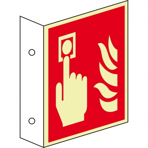 Schild I PERMALIGHT power langnachleuchtend Fahnenschild Brandmelder, doppelseitig, Aluminium, 150x150mm, ASR A1.3, ISO 7010 F005