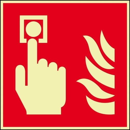 Schild I PERMALIGHT power langnachleuchtend Brandschutzschild Brandmelder, Aluminium, 200x200mm, ASR A1.3, DIN EN ISO 7010 F005