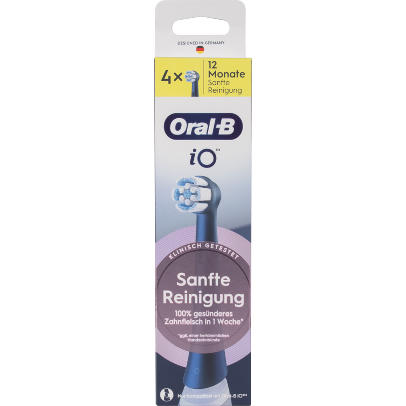 Braun Oral-B iO Sanfte Reinigung 4er Aufsteckbürste, schwarz, Für empfindliche