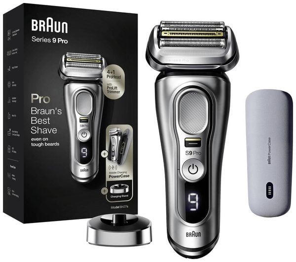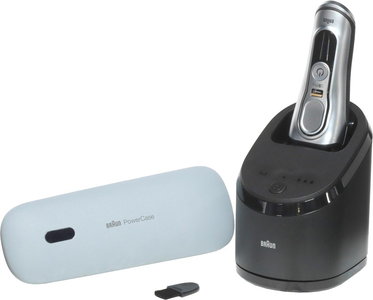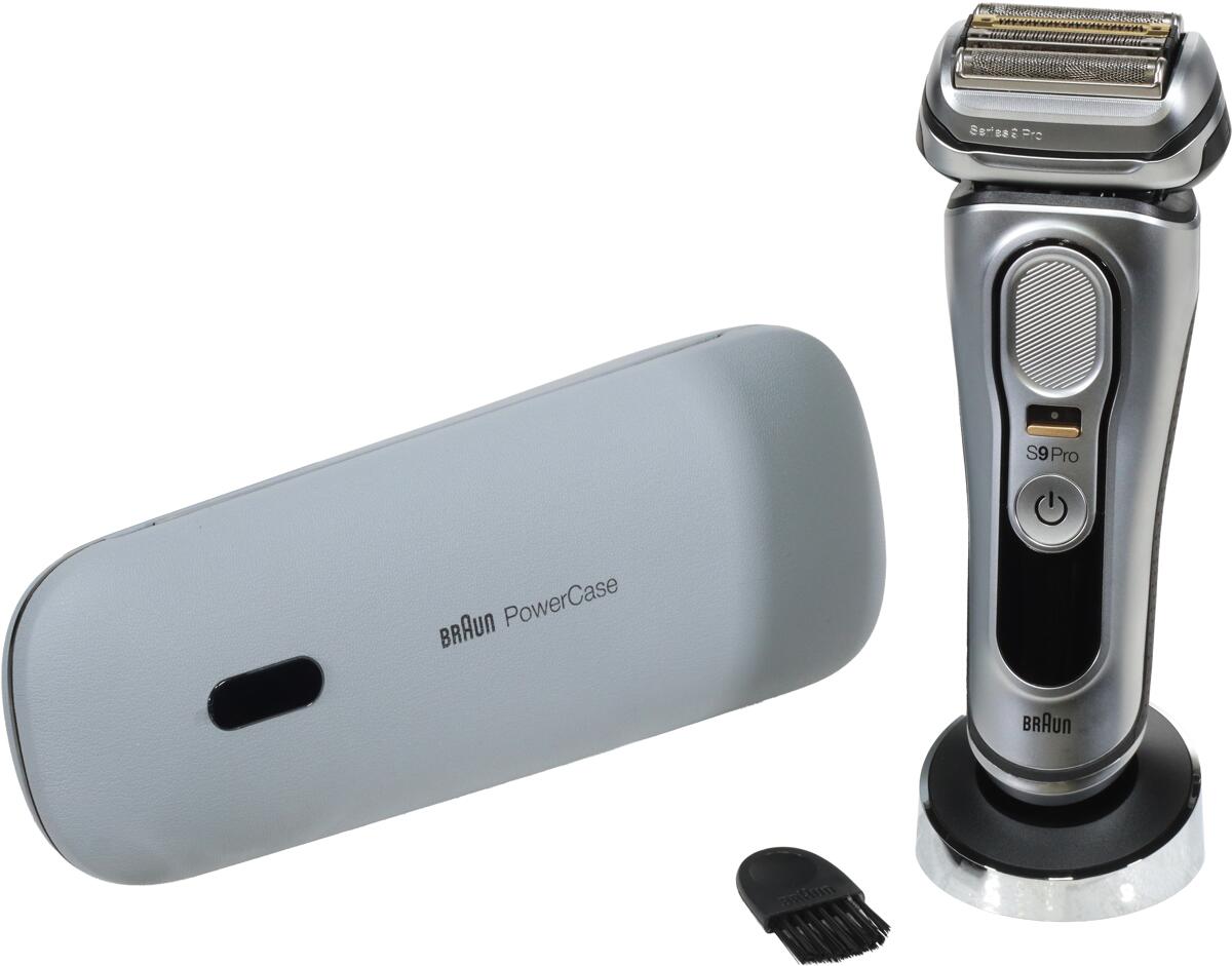 Braun Series 9 Pro+ Elektrorasierer, Reinigungsstation, Rasierer-Ladeetui (PowerCase), Wet & Dry, 9577cc, Silber