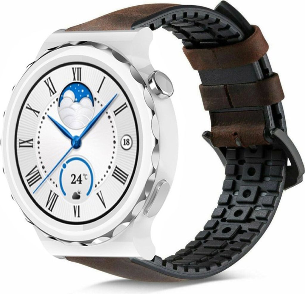 Strap-it Huawei Watch GT 3 Pro 43mm Silikon-/Lederarmband (Braun)
