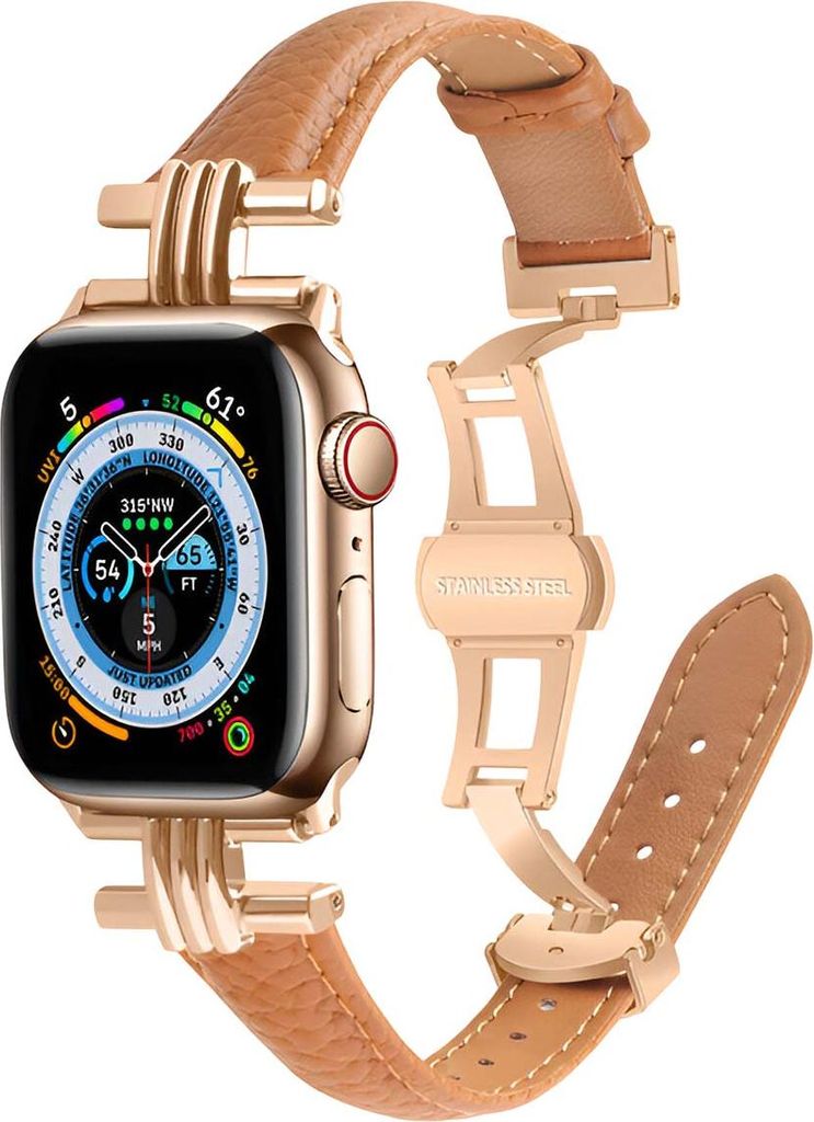 Eko, Armband für Apple Watch 38/40/41mm Leder mit Faltschließe, Braun