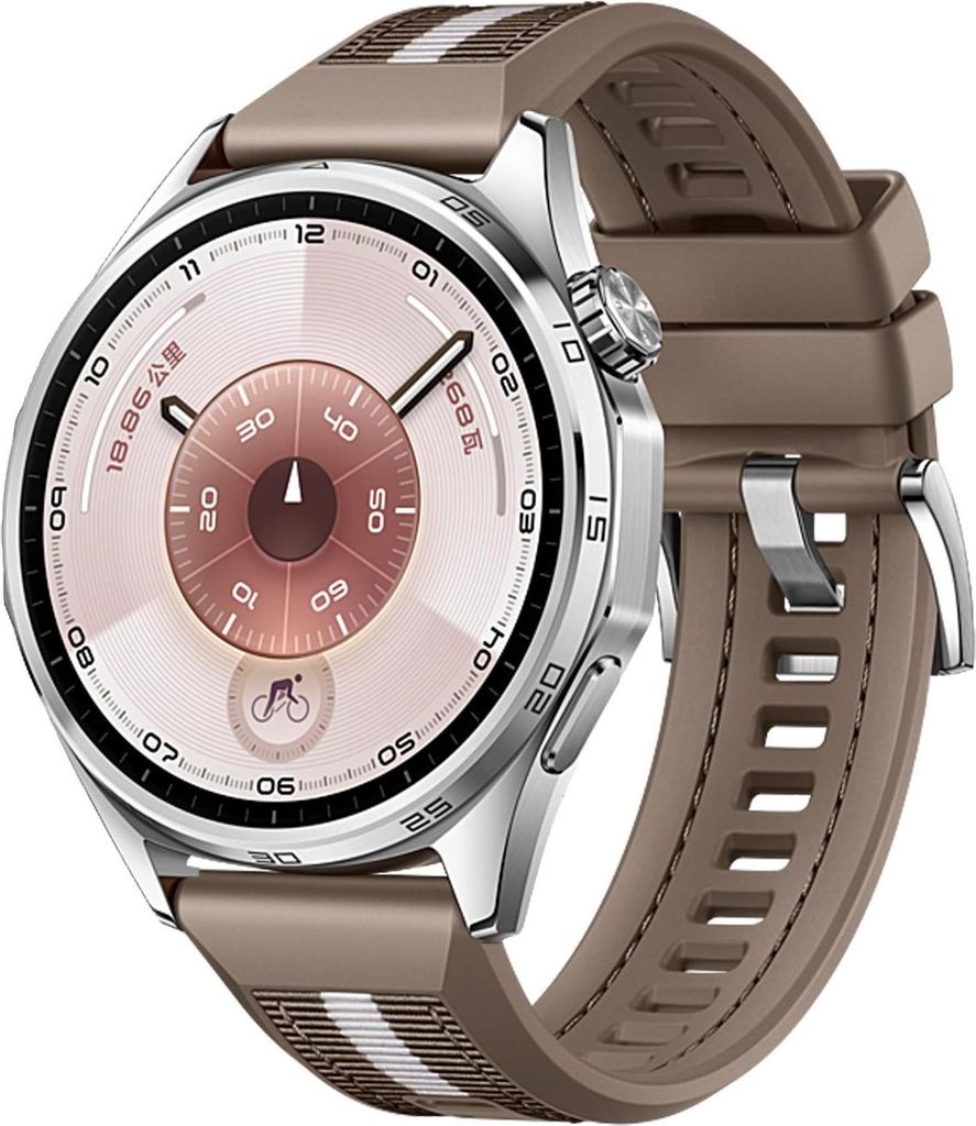 Hybrid Armband für Huawei Watch GT 6 46mm Silikon Nylon Design Ersatz Braun