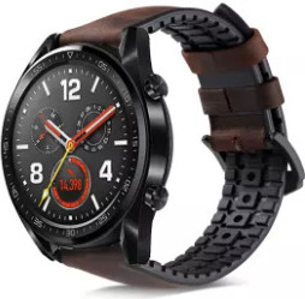 Strap-it Huawei Watch GT 2 Silikon / Lederarmband (Schwarz / Braun)