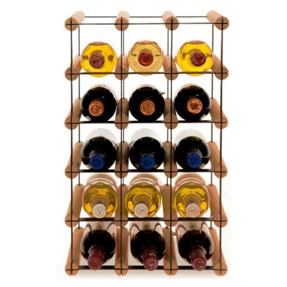 PROREGAL Modulares Weinregal VINOTECA MOD METAL | HxBxT 52,5x32,5x24,5cm | 3x5 Flaschen | Massives Kiefernholz | Braun geölt | Flaschenregal