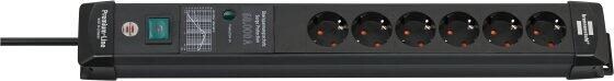 Brennenstuhl Premium-Line Steckdosenleiste 6-fach mit Überspannungsschutz bis zu 60.000 A, 5m Kabel, Schalter, Wandmontage, schwarz(1951160402)