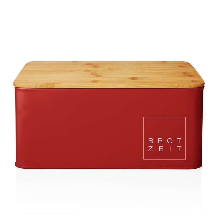 Lumaland Cuisine Brotkasten Brotdose aus Metall mit Bambus Deckel Brotbox rechteckig 30,5 x 23,5 x 14 cm 2in1 Brotbehälter & Schneidebrett Rot