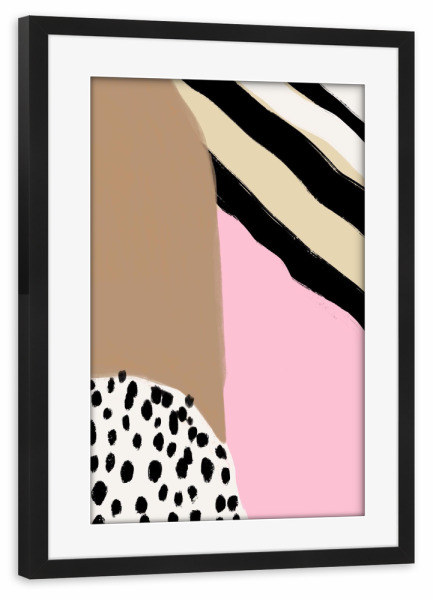 Poster mit Rahmen schwarz "Crazy Life Art browni" artboxONE - Abstrakt - Crazy life art browni,Dots,Punkte,Sommer,Bunt,Rosa,Braun,Brown,Streifen,Zebra