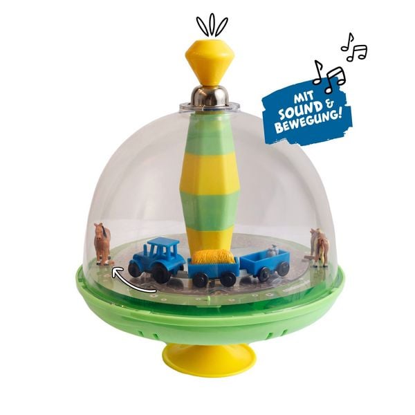 Brummkreisel mit Bauernhof-Motiv - Interaktiver Panoramakreisel mit Tiergeräuschen und beweglichen Elementen für Kinder ab 18 Monaten