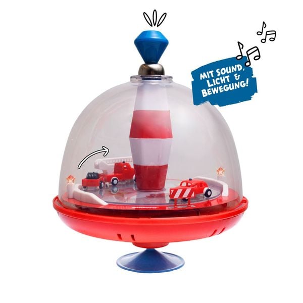 Brummkreisel mit Feuerwehr-Motiv - Interaktiver Panoramakreisel mit Sirenengeräuschen und beweglichen Elementen für Kinder ab 18 Monaten