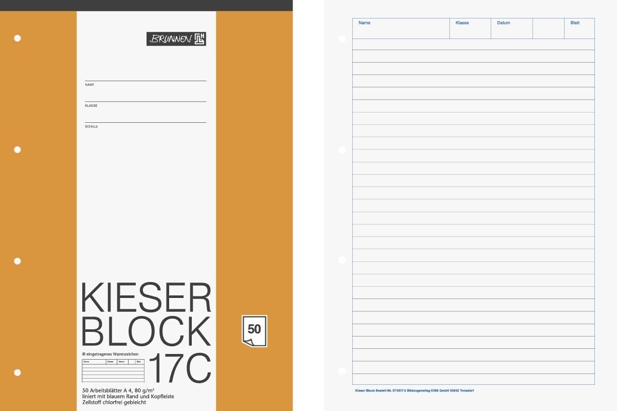 Brunnen KIESER-Block 14C - DIN A4 - Lineatur 20 - 50 Blatt