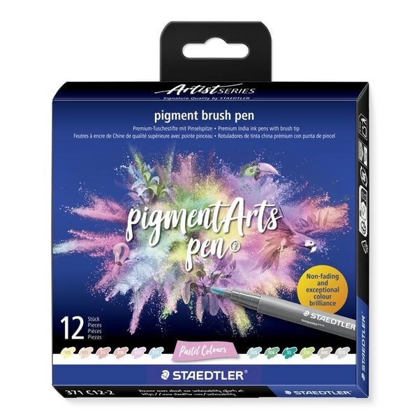 STAEDTLER Schreib- und Zeichbedarf pigment brush Fasermaler Pinselspitze, Pastel Colours, 12er Set