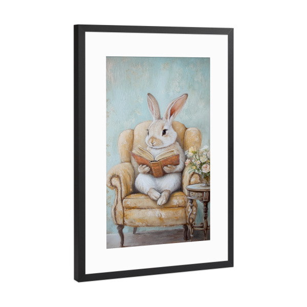 Poster mit Rahmen Schwarz (Metallic) "Kaninchen liest ein Buch" artboxONE - Für Kinder,Tiere - Hase,Kinderzimmerdekoration,Kinderzimmer,Kinderzimmer