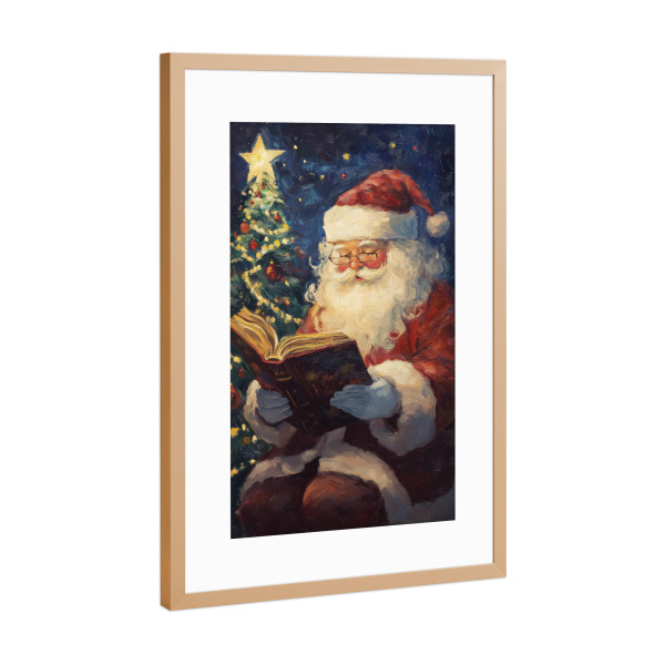 Poster mit Rahmen Kupfer "Der Weihnachtsmann liest ein Buch" artboxONE - Für Kinder,Abstrakt,Fiktion,Festivals