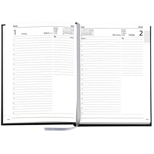 Buchkalender 795 A5 1 Tag/Seite Leder schwarz 2025