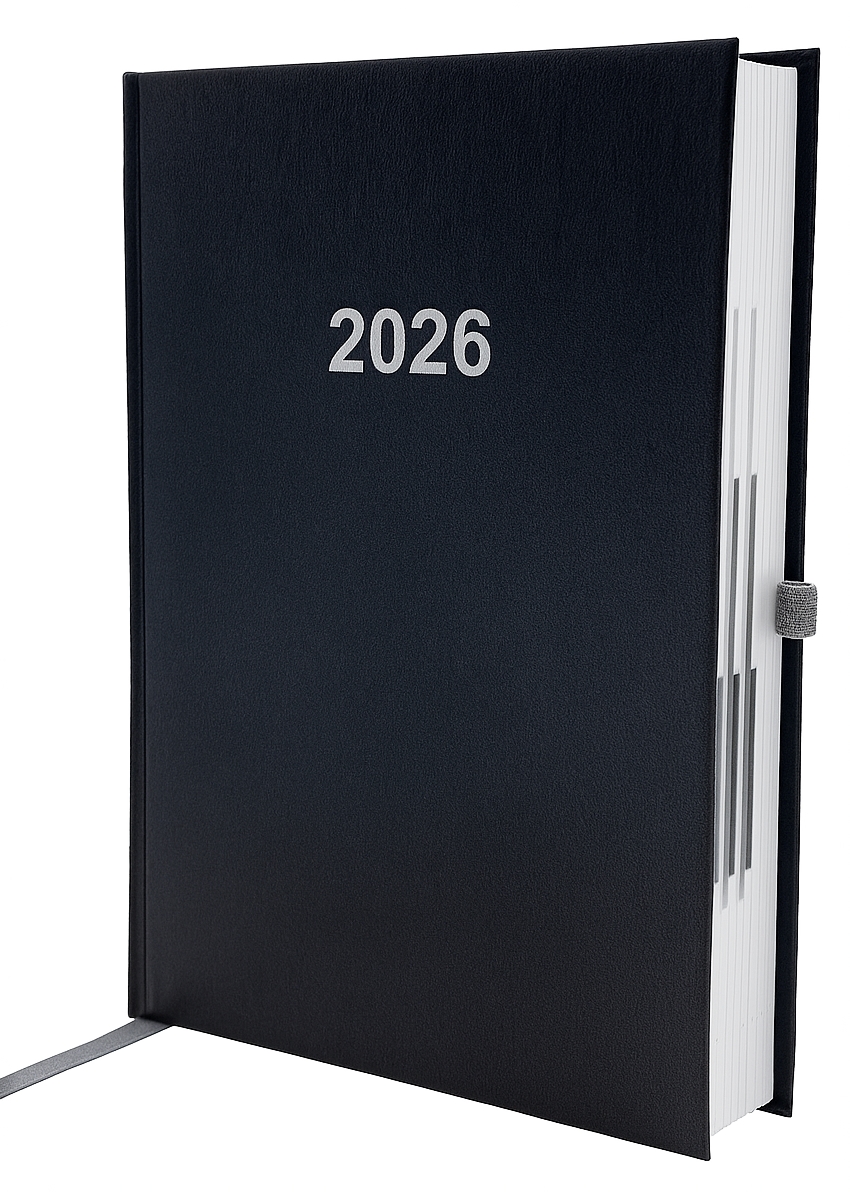 Buchkalender A5 1 Tag/Seite Balacron schwarz 2026