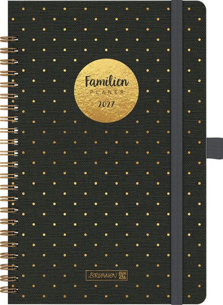 BRUNNEN 1070291017 Buchkalender Familienplaner 2027 'Gold-Punkte' A5, Kunststoff