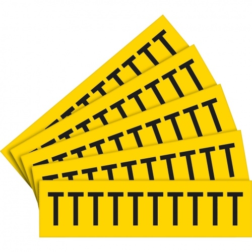 Aufkleber I Selbstklebende Buchstaben T, gelb/schwarz, Folie, Schrifthöhe 25mm, 5Bogen/VE, 10/BOG