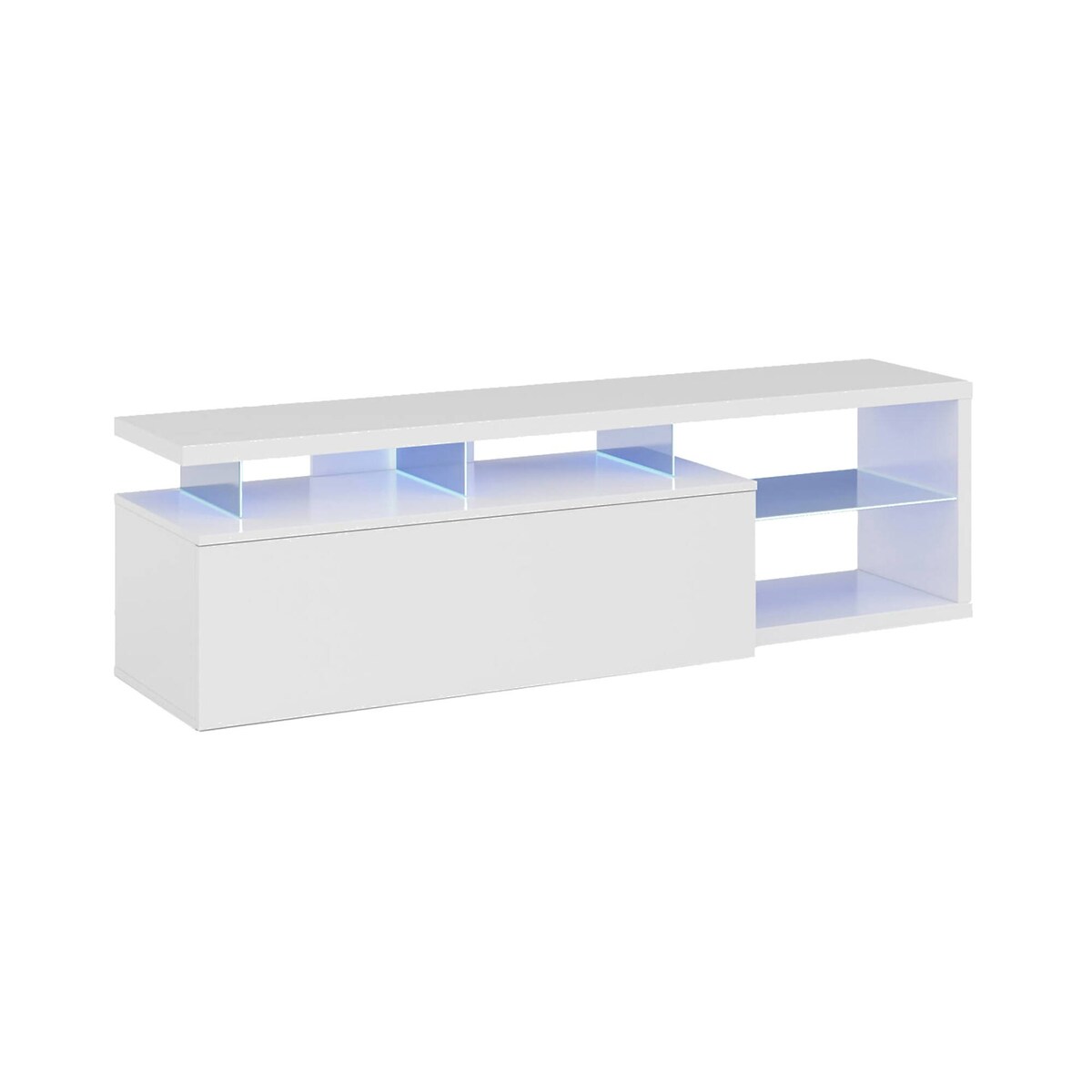 TV-Ständer Dlupert, Sideboard für Wohnzimmerfernseher mit 1 Tür, TV-Ständer mit LED-Licht, Lounge-Buffet, 150x41h50 cm, Glänzend Weiß