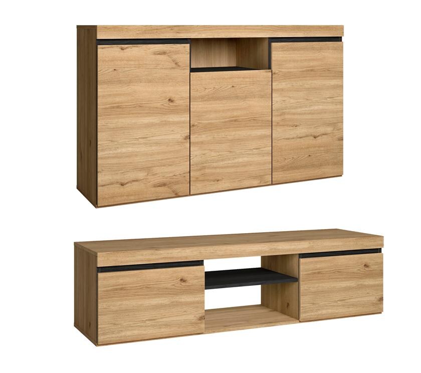SKRAUT HOME Set Natural Wohn-Esszimmer, Zusatzmöbel, Buffet TV-Schrank 160cm Nordeiche schwarz _ SETNAT160