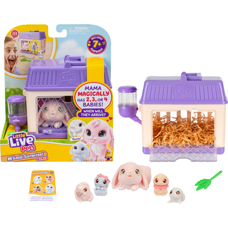 Moose Toys 300300 - Little Live Pets, Mama Surprise Mini Spielset Bunny, Interaktive Mini-Hasen Mama mit 4 Babys und Zubehör