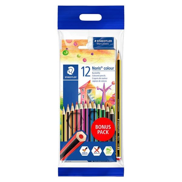 STAEDTLER Buntstifte Noris colour 185, 12 Buntstifte, 1 Bleistift, 1 Radierer