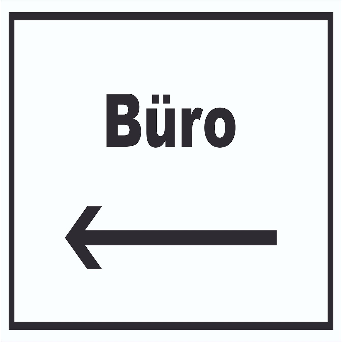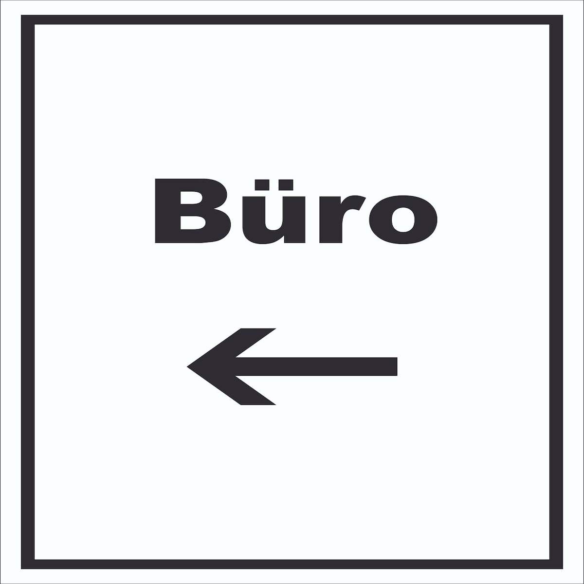 Büro Schild mit Text und Richtungspfeil links Office Bureau waagerecht A5 Rückseite selbstklebend