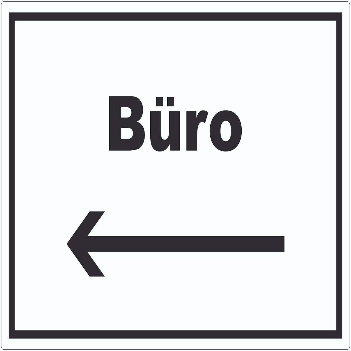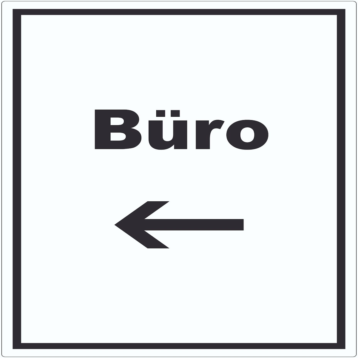 Büro Schild mit Text und Richtungspfeil links Office Bureau hochkant A5 Rückseite selbstklebend
