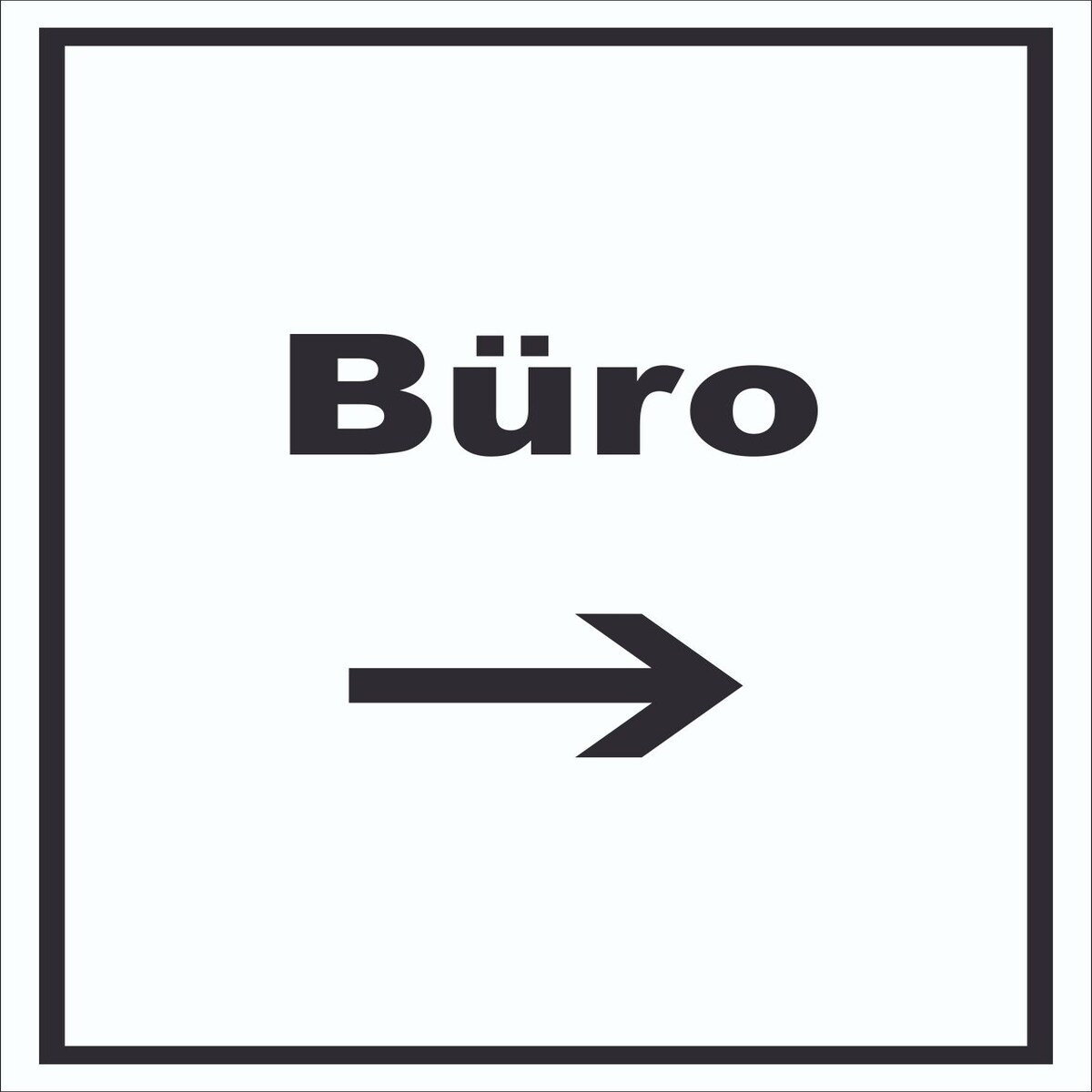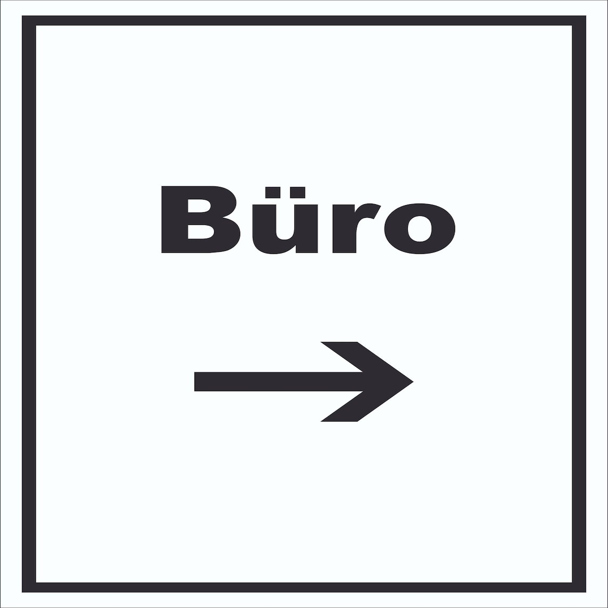 Büro Schild mit Text und Richtungspfeil rechts Office Bureau waagerecht A1 Rückseite selbstklebend