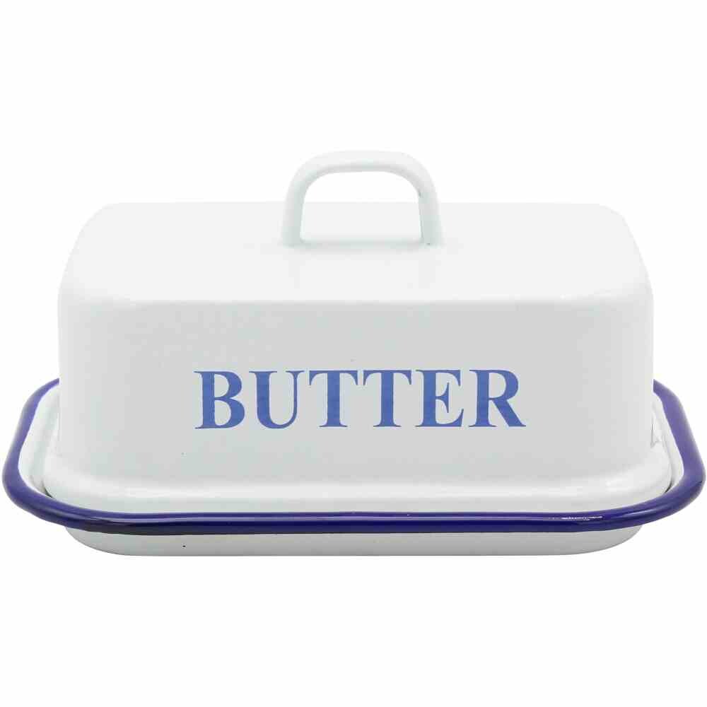 Ibili-Blanca Butterdose, emaillierter Stahl, 17x12x6 cm, weiß/blau