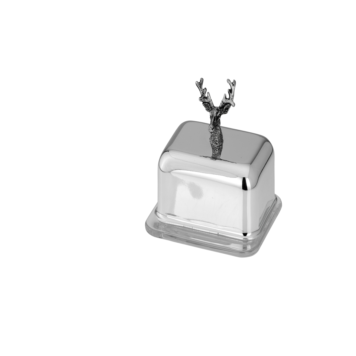 Butterdose mit Hirsch-Knopf für 1/4 Pfund, mit Glas, 40 ml, versilber, Gesamt: 10,0 x 8,5 x 9,5 cm