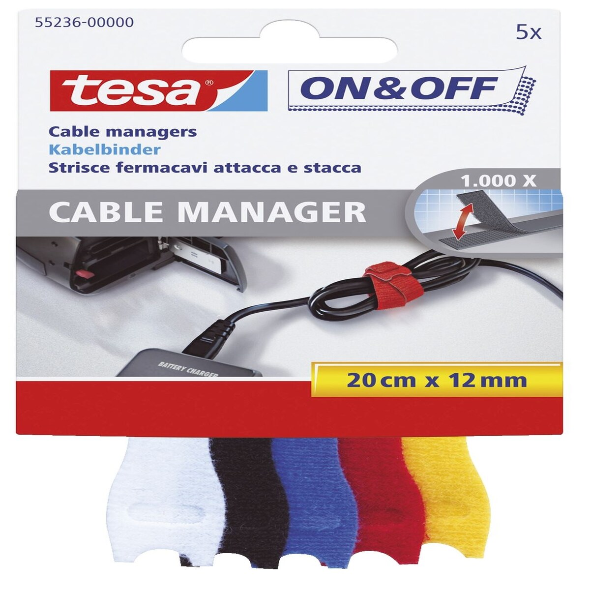 Tesa 55236-00000-00 On & Off Cable Manager - 12 mm x 20 cm, 5 Stück sortiert, small