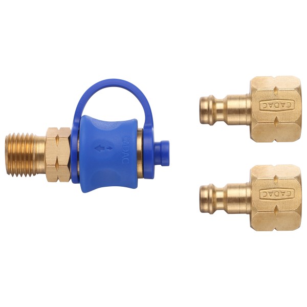 Cadac Quick Release Coupling Kupplungsstück für Gasschlauch mit 2 Anschlüssen DE 50mBar 338-1-DE